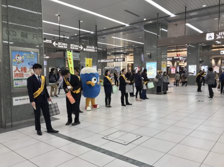 静岡県くらし・環境部環境局廃棄物リサイクル課主催による不法投棄撲滅街頭キャンペーンに参加しました。JR静岡駅 在来線改札前のコンコース にて、県の不法投棄通報制度を周知する広報用ポケットティッシュを配布して啓蒙活動を行いました。