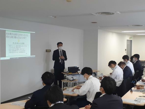 また、なぜ今脱炭素に取り組む必要があるのか、今のエネルギー情勢も含めて紹介し脱炭素支援に繋がる内容を講話しました。